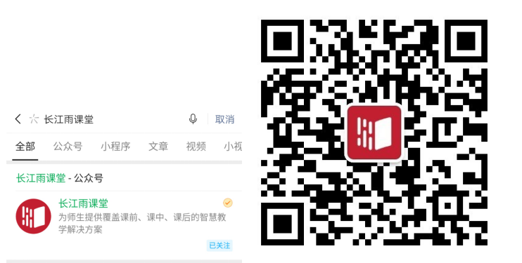 一、进入微信,搜索“长江雨课堂”,或者直接微信扫描下方二维码,关注长江雨课堂公众号